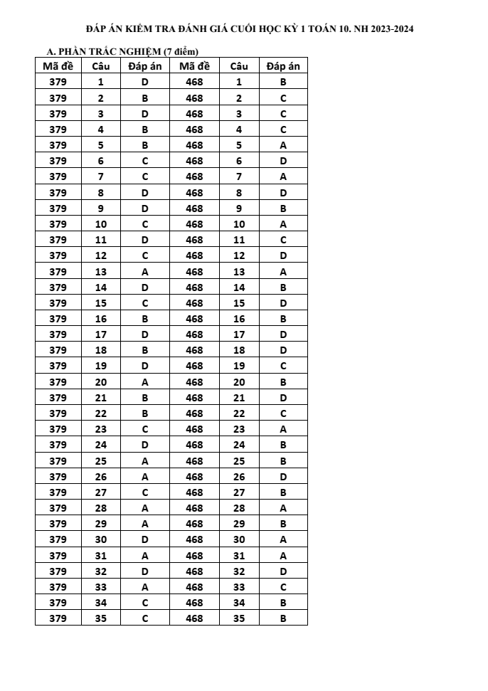 Xem thêm đề thi Học kì 1 Toán 10 năm 2023-2024 Tiền Giang hay khác: