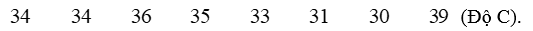 Câu 32. Nhiệt độ cao nhất của Tuyên Quang trong 8 ngày liên tiếp trong tháng sáu được ghi lại là:
