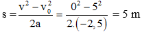 S = |x| = 0,05.(5.60)2 = 4500 m = 4,5 km (0,25 điểm)