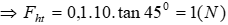 → N = P = m.g = 5.10 = 50N (0,5 điểm)