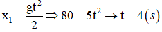 Vận tốc vật 1 khi chạm đất: v1 = g.t = 10.4 = 40m/s (0,5 điểm)