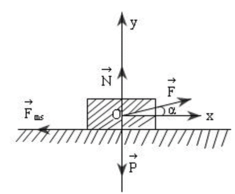 như hình vẽ. Cho biết: độ lớn lực kéo F = 20N; g = 10m/s2.