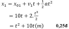 Phương trình chuyển động của ôtô: x = x0 + v0.t + 0,5.a.t2 (0,25 điểm)