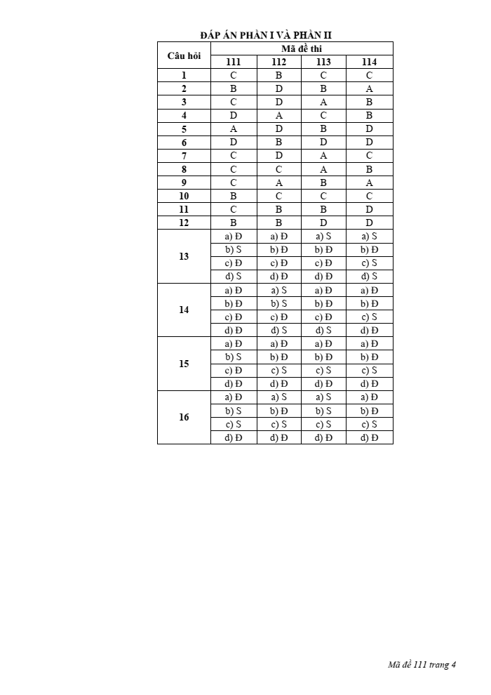 Đáp án Đề thi Giữa kì 2 trường THPT Kim Sơn A (Ninh Bình)