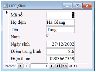 Bài 1.(2 điểm) Tạo biểu mẫu để nhập dữ liệu cho bảng HOC_SINH theo mẫu: