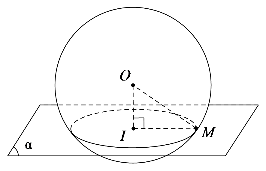 *) Gọi I là hình chiếu của O lên (α) và M là điểm thuộc đường giao tuyến của (α) và mặt cầu S(O; R).