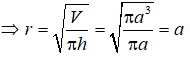 Câu 4. Tính diện tích xung quanh Sxq của hình trụ có đường cao h = a và thể tích V = πa3.