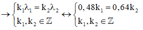 Câu 6. Trong thí nghiệm giao thoa Iâng, khoảng cách hai khe a = 2mm, khoảng cách hai khe tới màn D = l,2m. Khe S phát đồng thời hai bức xạ màu đỏ có bước sóng 0,7μm và màu lục có bước sóng 0,48μm. Khoảng cách từ vân sáng màu đỏ bậc 2 đến vân sáng màu lục bậc 5 (cùng phía so với sáng vân trung tâm) là:
