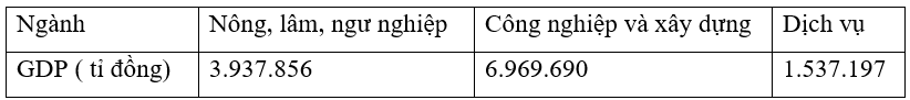 Câu 32. Căn cứ vào Atlat Địa lí Việt Nam trang 30, hãy cho biết nhận định nào sau đây không đúng về GDP và cơ cấu GDP phân theo ngành của ba vùng kinh tế trọng điểm?