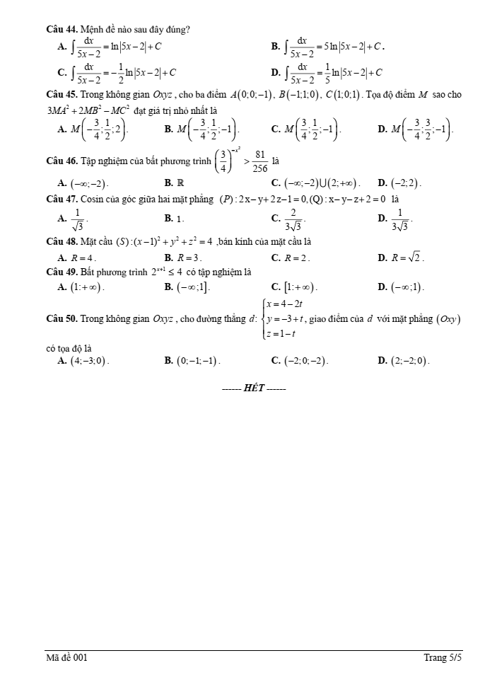 Xem thêm đề thi Học kì 2 Toán 12 năm 2023-2024 Thái Nguyên hay khác: