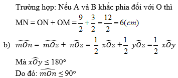 b)Cho (xOy, tia Oz nằm giữa hai tia Ox, Oy. Gọi Om, On lần lượt là tia phân giác của các góc (xOz, (xOy. Chứng minh rằng (mOn ≤ 90o