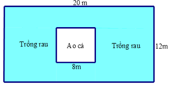 b) Giữa mảnh vườn bác đào một cái ao hình vuông để nuôi cá cạnh 8m, phần còn lại của mảnh vườn bác dùng để trồng rau. Tính diện tích phần đất trồng rau.