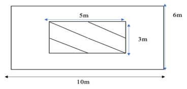 Bài 4: (1,0 điểm) Một khoảng sân có dạng hình chữ nhật với chiều dài 10m và chiều rộng 6m. Người ta để một phần của sân để trồng hoa (phần kẻ sọc), phần còn lại lát gạch (phần trắng).