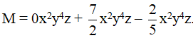 Thu gọn đơn thức M rồi xác định hệ số, phần biến và bậc.