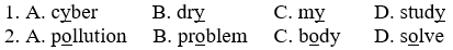 | 1 | D | Đáp án D phát âm là /i/, các đáp án còn lại phát âm là /ai/ |