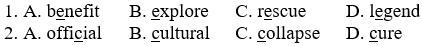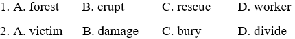 I. Choose the letter A, B, C or D the word that has the underlined part different from others.