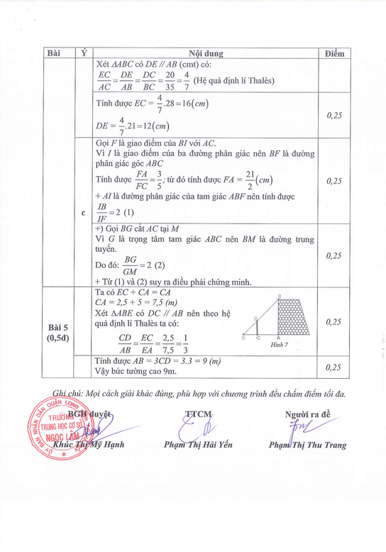 Đáp án Đề thi Giữa kì 2 trường THCS Ngọc Lâm (Hà Nội)