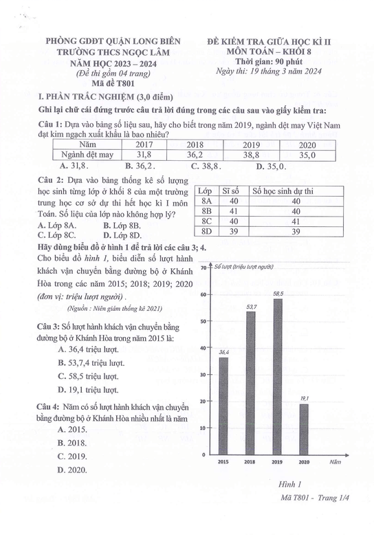 Với đề thi Giữa kì 2 Toán 8 năm 2023-2024 trường THCS Ngọc Lâm, Hà Nội có đáp án sẽ giúp bạn ôn tập và đạt điểm cao trong bài thi Toán 8.