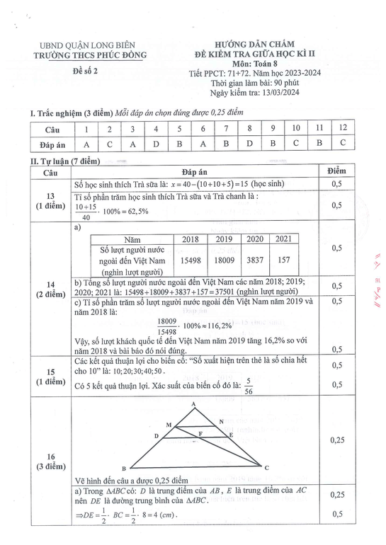 Đáp án Đề thi Giữa kì 2 trường THCS Phúc Đồng – Hà Nội(đề 2)