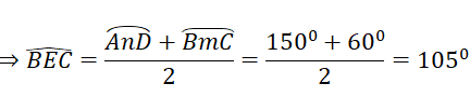 Câu 7: Cho hình vẽ, biết cung AnD= 150o ; cung BmC= 60o . Tính số đo góc BEC?