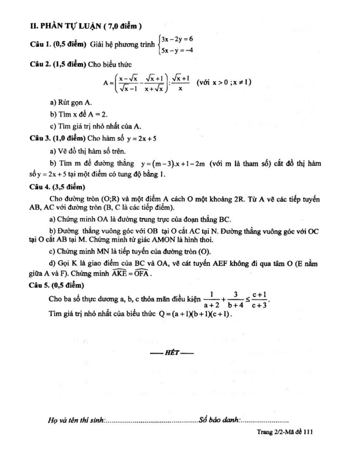 Với đề thi Học kì 1 Toán 9 năm 2023-2024 phòng GD&ĐT Phủ Lý (Hà Nam) có đáp án sẽ giúp bạn ôn tập và đạt điểm cao trong bài thi Toán 9.