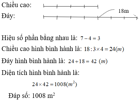 Câu 2: (4 điểm) Một mảnh đất hình bình hành có tỉ số giữa chiều cao và đáy là , chiều cao kém đáy 18m. Tính diện tích mảnh đất đó.