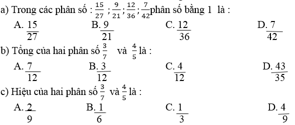 Câu 5: Phân số nào sau đây không bằng với phân số