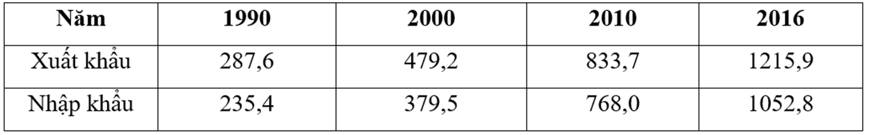 b) Giải thích giá trị xuất, nhập khẩu của Nhật Bản, giai đoạn 1990 - 2016?