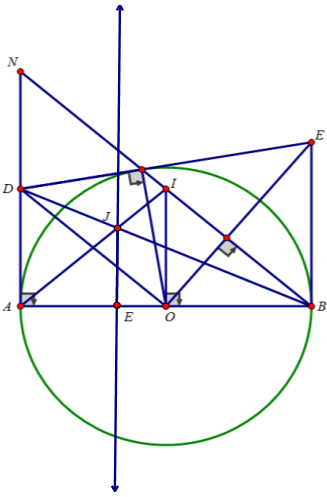 Xét tam giác ABI có OI vừa là đường cao vừa là trung tuyến