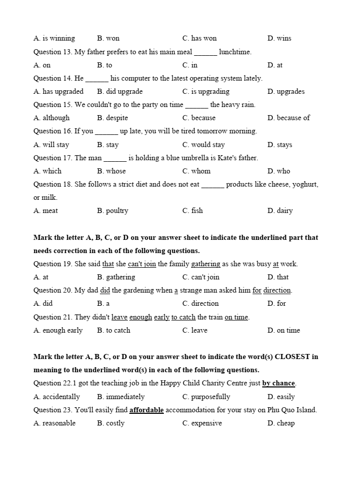 Theo dõi chúng tôi miễn phí trên mạng xã hội facebook và youtube:Loạt bài Đề thi vào lớp 10 môn Tiếng Anh (có đáp án) được các Giáo viên hàng đầu biên soạn giúp bạn ôn luyện và giành được điểm cao trong kì thi vào lớp 10 môn Tiếng Anh.