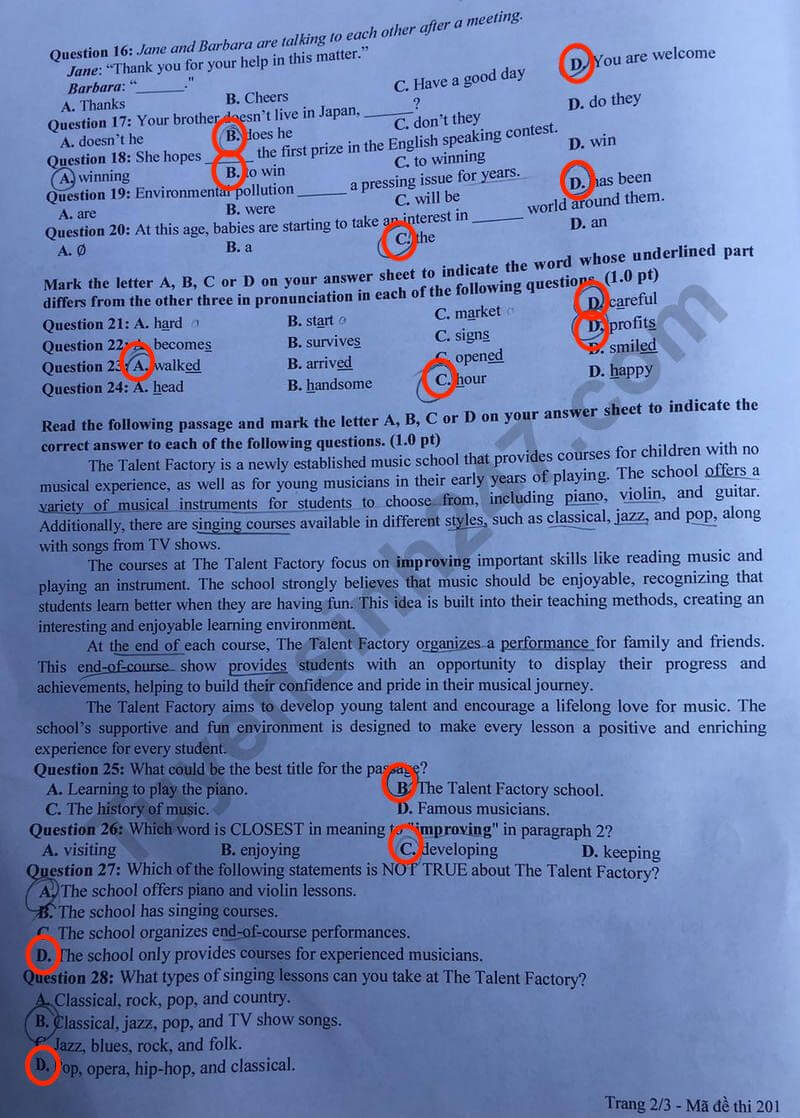 Theo dõi chúng tôi miễn phí trên mạng xã hội facebook và youtube:Loạt bài Đề thi vào lớp 10 môn Tiếng Anh (có đáp án) được các Giáo viên hàng đầu biên soạn giúp bạn ôn luyện và giành được điểm cao trong kì thi vào lớp 10 môn Tiếng Anh.