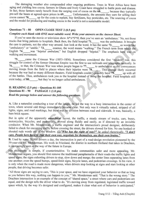 - Đề thi tuyển sinh vào lớp 10 Tiếng Anh Chuyên Sóc Trăng năm 2024