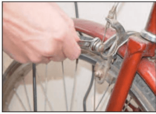 Câu 27. Sau khi rút ruột dây phanh, kiểm tra như thế nào là đạt yêu cầu khi cho bánh xe quay và bóp phanh?