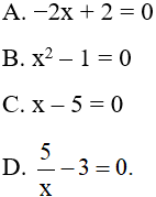 Câu 5: Cho các phương trình: x(2x + 5) = 0 (1); 2y + 3 = 2y − 3 (2); u2 + 2 = 0 (3); (3t + 1)(t − 1) = 0 (4).