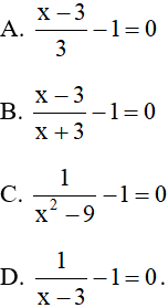 Câu 6: Phương trình x – 3 = 0 có nghiệm là: