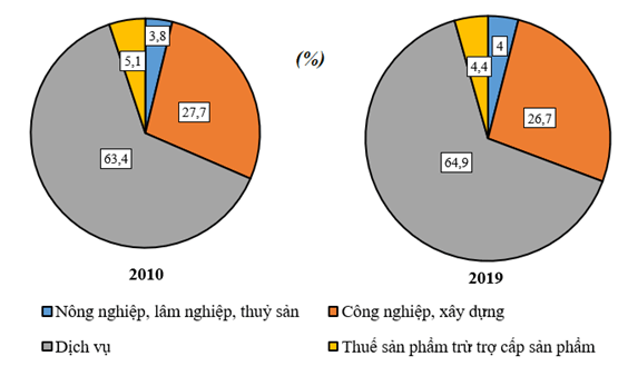 + Tỉ trọng thuế sản phẩm trừ trợ cấp sản phẩm giảm và giảm 0,7%.