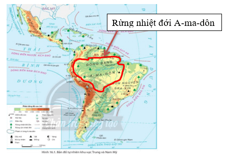 Dựa vào hình 16.1, hình 18, bảng số liệu và thông tin trong bài, xác định vị trí của rừng nhiệt đới A-ma-dôn