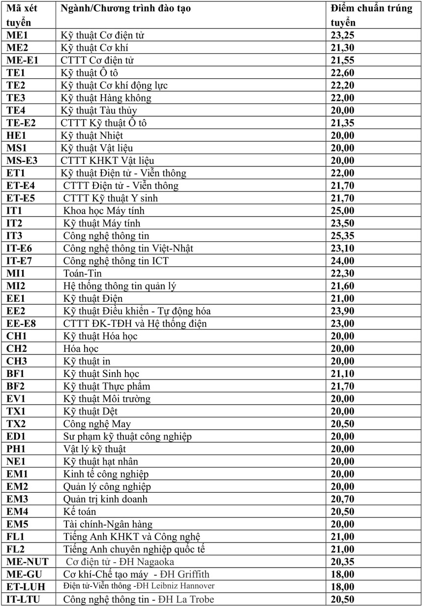 Đại học Bách khoa Hà Nội (HUST) công bố điểm chuẩn dựa vào kết quả thi tốt nghiệp THPT là từ 23,03 đến 28,29