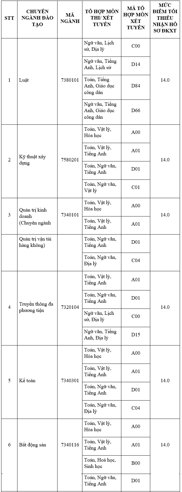 | 52380107 | Luật kinh tế | C00; D14; D66; D88 | 15.5 |