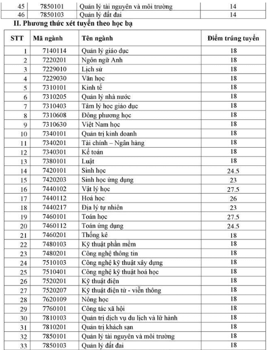 | 52140114 | Quản lý giáo dục | 18 | Xét tuyển theo học bạ | |