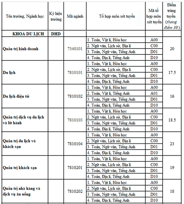 - Điểm chuẩn Trường Du lịch - Đại học Huế năm 2018