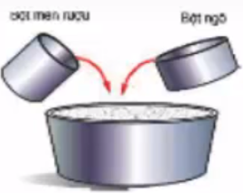Bước 1: Cân bột và rượu: 100 phần bột, 4 phần men rượu.