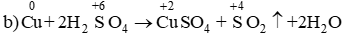 b) Cu + 2H2SO4 → CuSO4 + SO2 + 2H2O.
