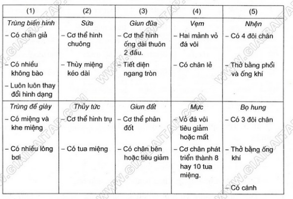 Bài 1 (trang 101 SGK Sinh 7): Lấy ví dụ về các đặc điểm của các ...