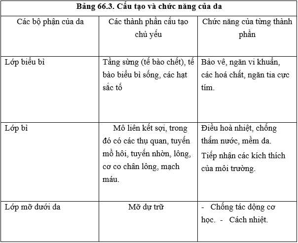 Bảng 66.4. Cấu tạo và chức năng của các bộ phận thần kinh