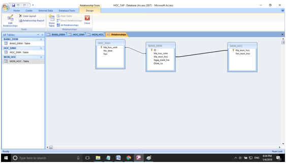 - Làm tương tự với bảng BANG_DIEM và bảng MON_HOC.