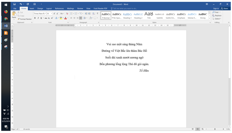 Bài thực hành 7 trang 82 SGK Tin học 3: Tập gõ không dấu đoạn thơ sau đây: