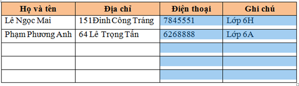 Giải Tin học 6 Bài thực hành 9: Danh bạ riêng của em