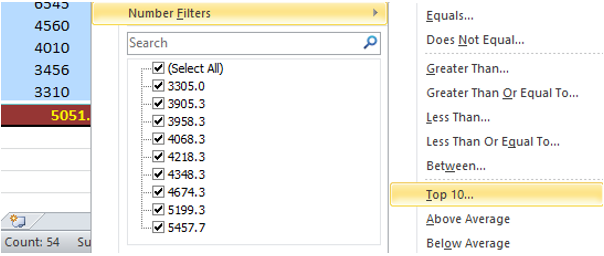 , nháy chuột chọn Number Filters, chọn Top 10: