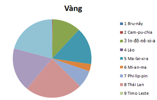 a) 1. Tạo biểu đồ tròn để biểu diễn số huy chương vàng đạt được của các nước.